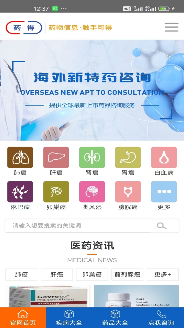 药得汇聚了全球最新的肿瘤药、新特药,原研药、仿制药信息,药得APP已经在苹果、安卓各大应用市场上架,使用更便捷更流畅,欢迎各位新老用户下载体验,多给五星好评哦!