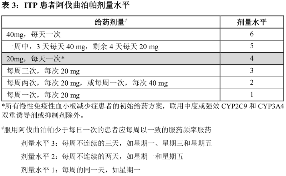 ■慢性肝病血小板减少症患者的推荐剂量: